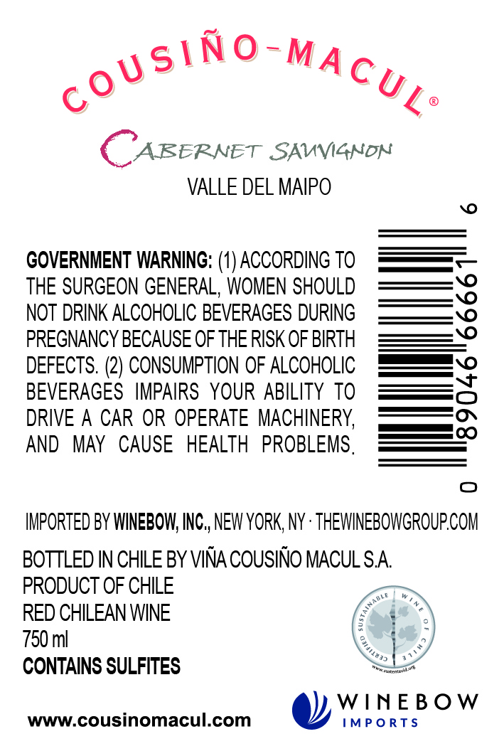 Cousiño Macul Classic Cabernet Sauvignon Back Label