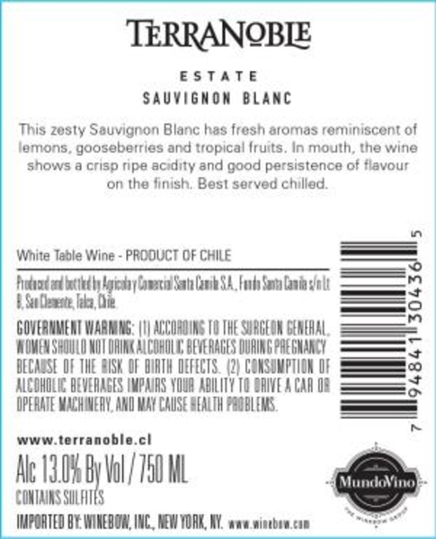Terranoble Classic Sauvignon Blanc Back Label